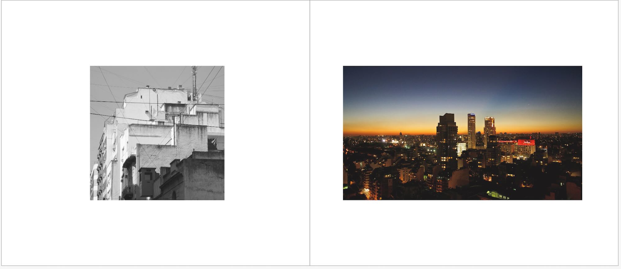 Buenos Aires, el libro fotográfico, fue presentado durante Disanima Piano segunda edición (durante Festival di Letteratura), 10-12 septiembre 2015, en Mantova, Italia, Instalación audio visual + arte plástico, aquí. Fotografías non iconica, en blanco y negro y color, de Buenos Aires. Texto critico de Alessandro Trabucco y texto de Michele Molinari. Formato A4 encuadernación con grampas, tapa blanda, 36 paginas, 14 fotos en color y 14 fotos en blanco y negro.