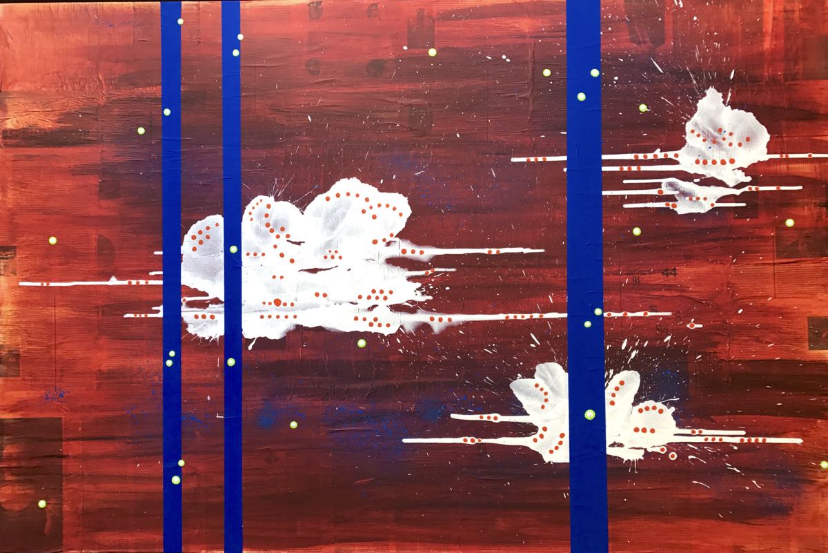 Acrylic on canvas and/or varnish (#02, #09), some are on newspaper and canvas (#03, #04, #06, #08, #10). Different sizes: small canvases (#01, #02, #03, #08) are .6 inch thick, big canvases are 1.2 inches thick and solid painted on the edge. Prices are in US dollars and do not include worldwide shipping. More info and photographs upon request.