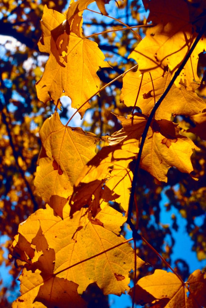 Photography is often described as the act of capturing light. Here the logic is reversed: it is the leaf, the flower, the translucent thing, that captures the light for you — holds it still long enough to be seen. The camera records what the eye, moving too fast, tends to miss: that small things, lit from behind, contain more color than we think. That yellow is not one thing. That even in a big city, autumn arrives leaf by leaf, quietly, and with considerable invention.