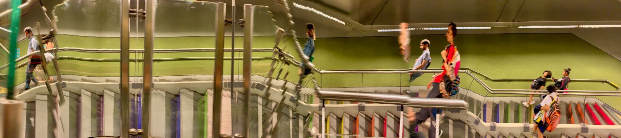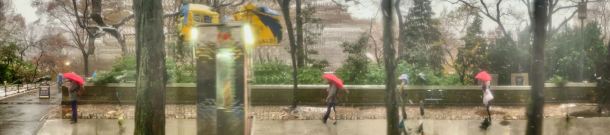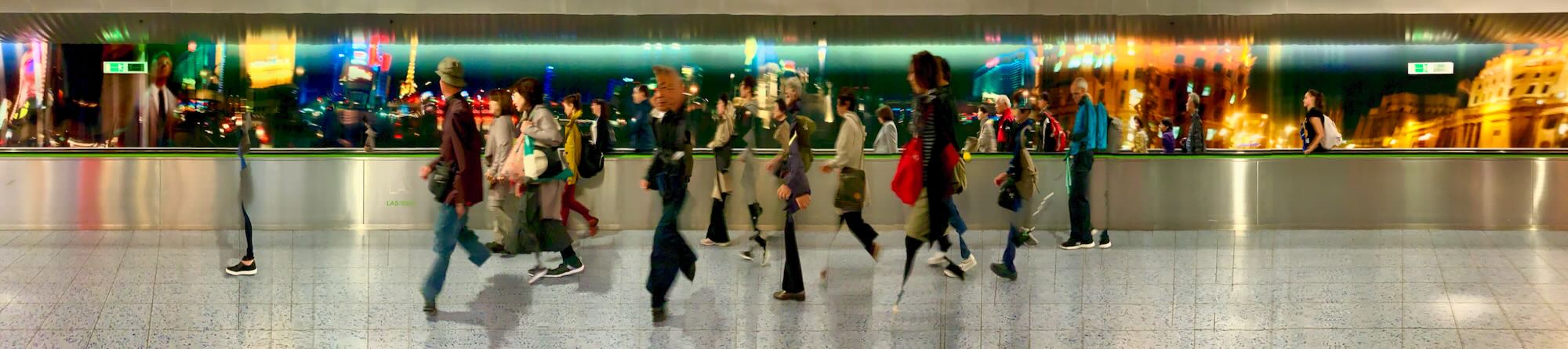 Panomorphosis [pano- panorama, -morphosis variation of form] Panomorphosis: Digital images with proportions of 2:9 or 30x135. Technology creates instruments that allow us to explore new techniques. Taking panoramic photos with a smartphone is nothing new; what makes Panomorphosis different is how the technology is used. Rather than slowly pivoting around a point, the photographer and subject move along parallel planes. The relative movement between the two systems is irrelevant to the outcome; the photographer may as well be considered stationary while the subject moves. The software stitches together a sequence of vertical images, and moments are added to the process. Time is collapsed and trapped in the image. Still images portray a specific space at a particular moment in time. Panomorphosis stretches space and freezes moments; the two edges of the image occurred several seconds apart. During the photo shoot, the camera acquires data, and the smartphone's RAM capacity defines the duration of the Panomorphosis recording. Therefore, each image's time span is different. Furthermore, objects in the far distance may be repeated or panned, while those closer by appear smaller due to the system's relative speed. Tricking the software has unintended but positive consequences: it produces works with strong creative and aesthetic power.